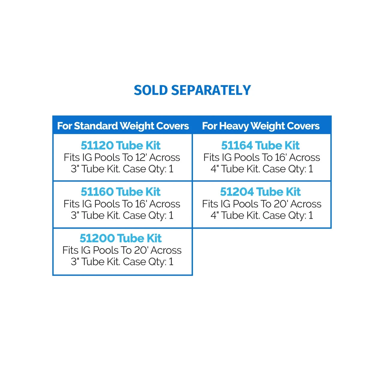 Accommodates tube kit models 51120, 51160, 51200, 51164 and 51204 (sold separately)