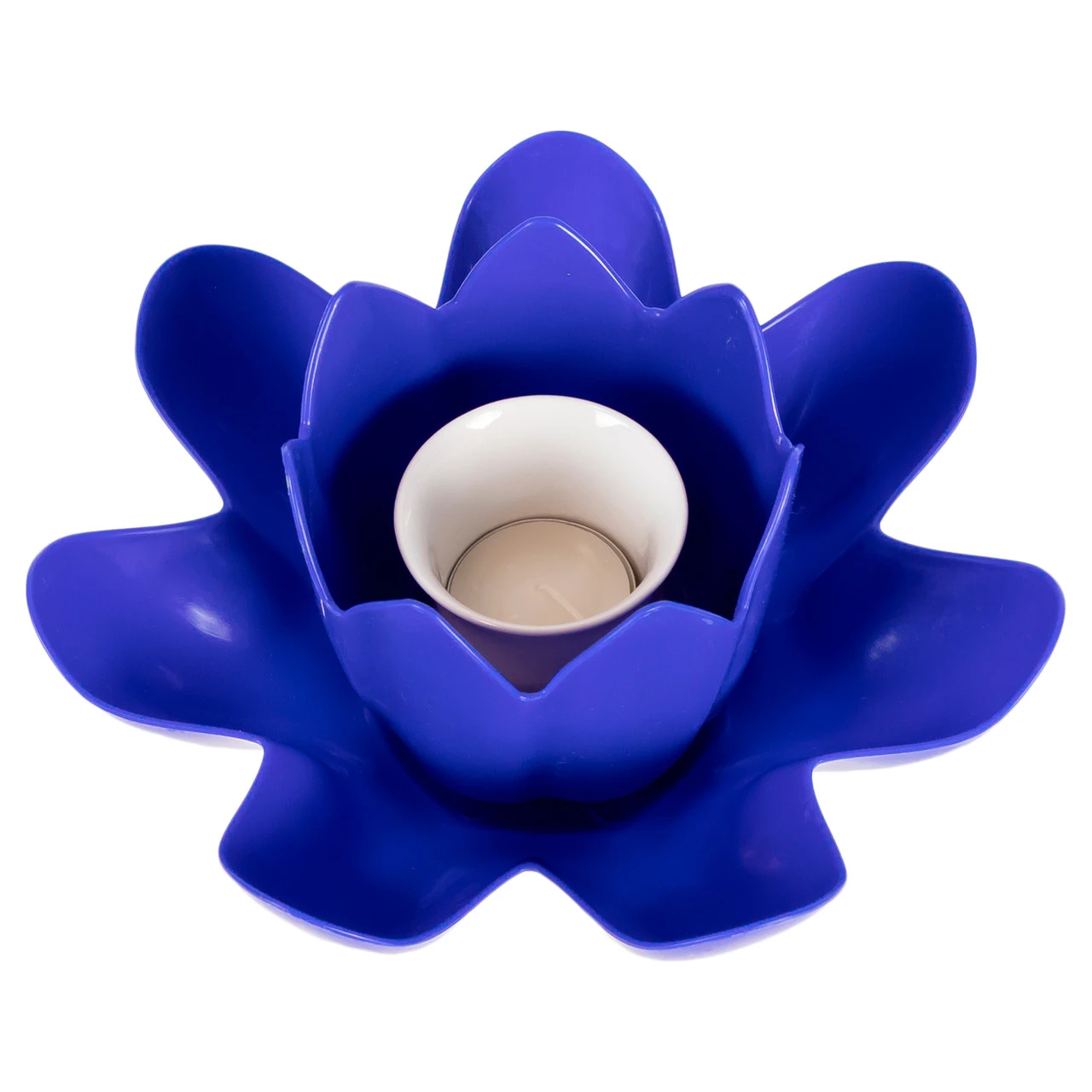 Ceramic candle holder placed in the middle of the flower